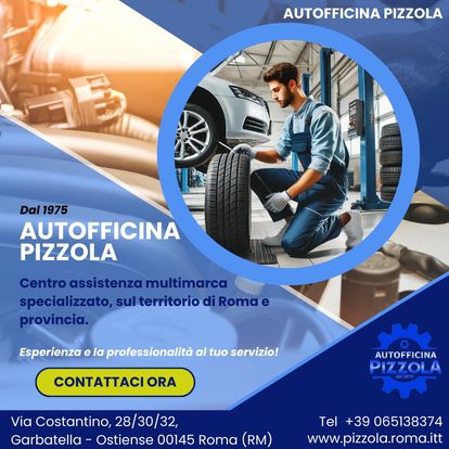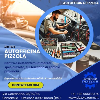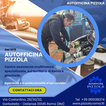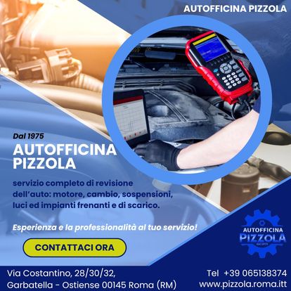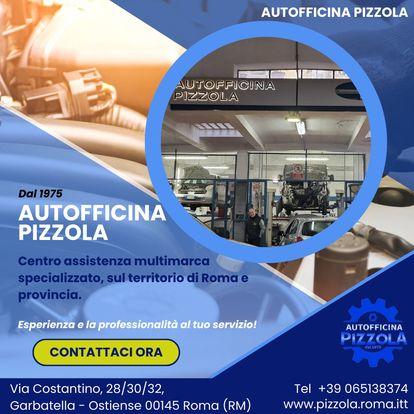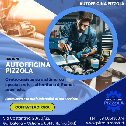 L’Autofficina Pizzola dal 1975 è specializzata in riparazioni e nell’assistenza di ogni particolare dell'auto. L’attività all’inizio si è concentrata sull’assistenza meccanica, ma con i cambiamenti del settore dell’automobile e vista la crescita della componente elettronica, ha ampliato i propri servizi fino ad occuparsi di tutti i tipi di problematiche. Fornisce servizi di soccorso stradale e autostradale, revisione e tagliando, gommista e sanificazione. L’Autofficina Pizzola è un centro assistenza multimarca specializzato. Il nostro team effettua diagnosi, assistenza e riparazione per ogni tipo di guasto sull’automobile, meccaniche ed elettriche e su ogni tipo di accessorio montato sull’auto, curandone ogni aspetto.